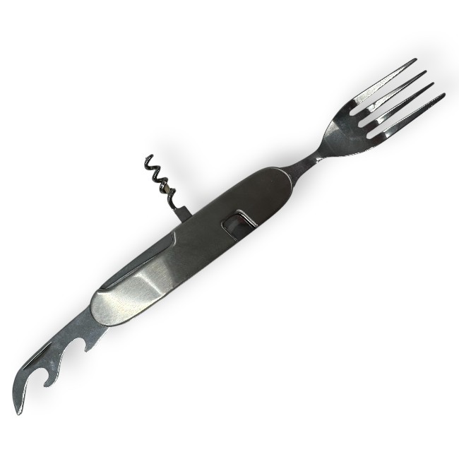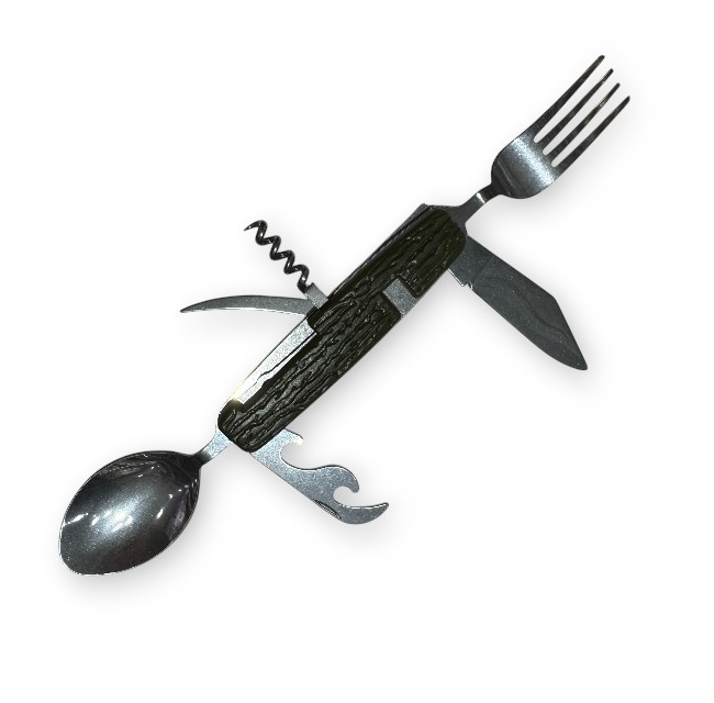 Cutit de buzunar pliabil multifuncțional, cu lingura, furculita
