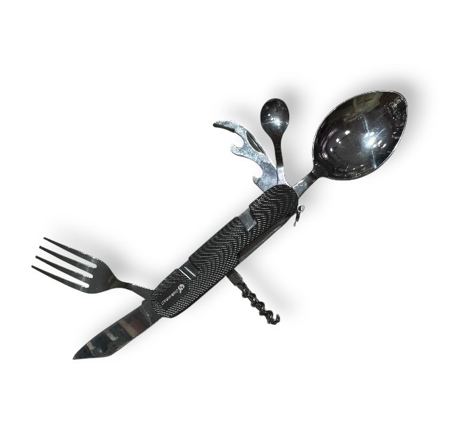 Cutit de buzunar pliabil multifuncțional, cu lingura, furculita, husă inclusă