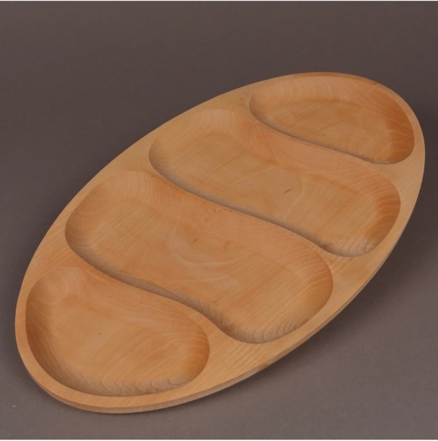 Platou bambus oval,4 compartimente 33x23cm