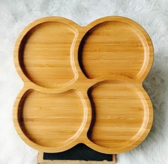 Platou bambus cu maner 4 compartimente 26cm